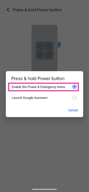 行きます設定>ショートカットとアクセシビリティ> [電源]ボタンを押します[電源と緊急メニューを有効にする]を選択します。