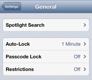 一般メニューを開きますステップ3:下にスクロールして選択しますパスコードロックオプション。
