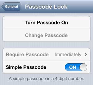 iPhone 5には、オンにできる4桁のパスコードユーティリティが含まれています。これにより、デバイスを使用する前に誰でもパスワードを入力する必要があります。