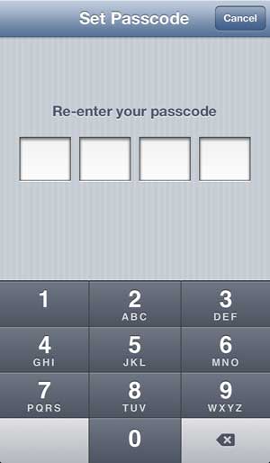 入力してから、目的のパスコードに再入力します次回iPhone 5のロックを解除する必要があるときは、作成したばかりのパスコードを入力する必要があります。