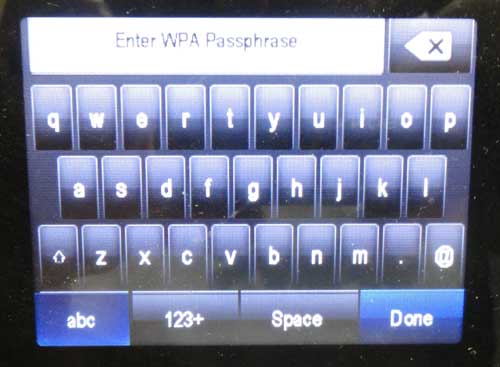 ステップ11:ワイヤレスネットワークパスワードを入力して、タッチします終わり。プリンターがワイヤレスネットワークに正常に接続されていることを確認したら、ワイヤレスアイコンにもう一度タッチして、表示されているIPアドレスを書き留めます。 192.168.x.xxのようなものでなければなりません。