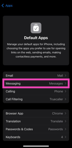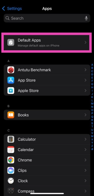 ステップ3:選択しますデフォルトアプリ。