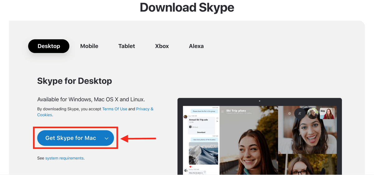 ここでは明白なことを述べていますが、他のことをする前にMacにSkypeアプリケーションを用意する必要があります。まだ持っていない場合は、に進んでくださいhttps://www.skype.com/en/get-skype/ダウンロードを取得します。 SkypeのMacバージョンを選択してください。