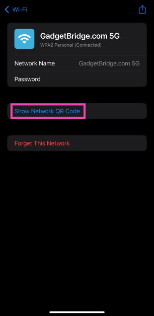 パスワードアプリに移動し、WiFiを選択します。リストから保存されたWiFiネットワークを選択し、[ネットワークQRコードを表示]をタップします。