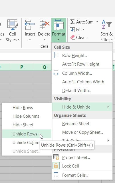 これらのシナリオでは、隠されたセルを変更して変更できるようにすることが不可欠です。