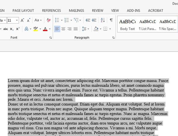 ステップ2:押しますCtrl + aキーボードでドキュメント全体を選択します。ドキュメント内の特定の場所でテキストを押し下げたい場合は、その場所の前後にテキストを選択してください。