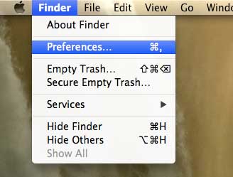 ステップ2:クリックしますファインダ画面の上部にリンクし、[設定]オプションをクリックします。