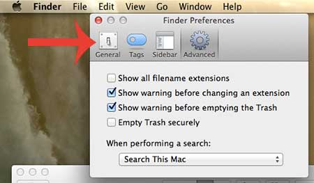 ステップ3:クリックします一般的なウィンドウの上部にあるタブ。