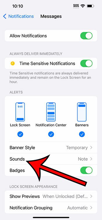 私たちのガイドは、これらの手順の写真を含むiPhoneのテキストメッセージ通知サウンドの電源を切ることに関する追加情報を以下に続けます。