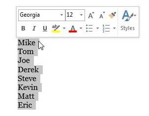 このチュートリアルの目的のために、私たちはそれぞれ独自の行にある名前の短いリストを並べ替えるだけです。