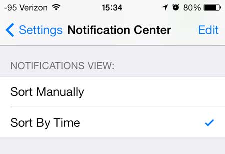 通知が通知センターでランダムにソートされている場合、設定はおそらく手動ソートに設定されます。