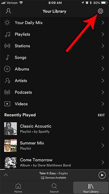 ステップ3:画面の右上隅にあるギアアイコンをタップします。