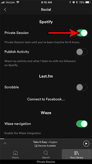 iPhone 7でSpotifyでプライベートセッションを開始する方法がわかったので、Spotifyの他の人があなたが聴いているものを見ることができないようにして、いつでもこのオプションを見つけて切り替えることができます。