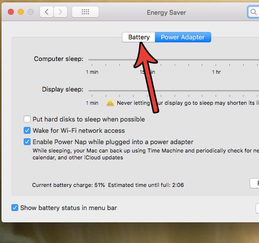 ステップ3:クリックしますバッテリーメニューの上部にあるタブ。