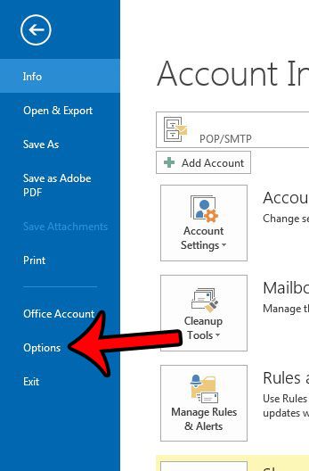 ステップ3:クリックしますオプションウィンドウの左側の列。