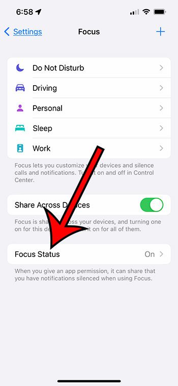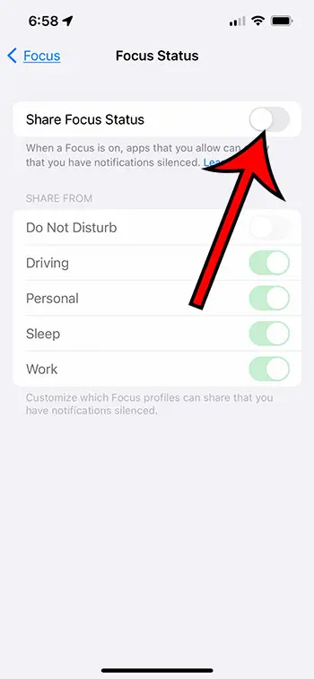 ステップ4:右側のボタンをタップしますフォーカスステータスを共有しますそれをオフにします。