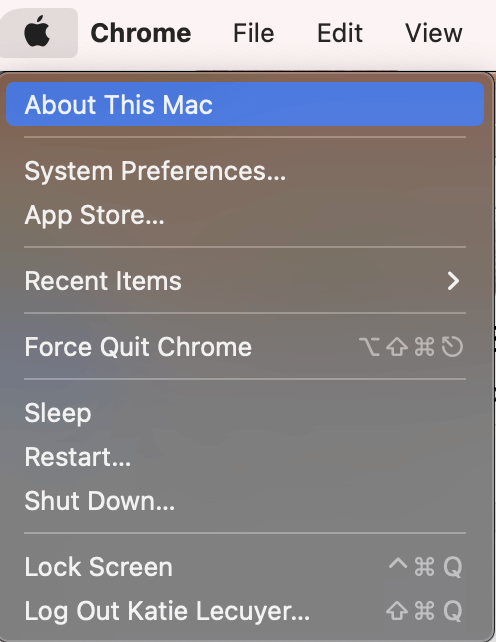 AppleアイコンをクリックしますそしてこのMacについて。