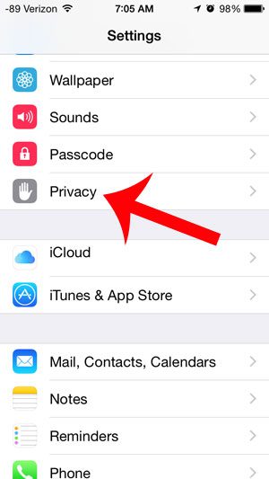 ステップ2:下にスクロールして選択しますプライバシーオプション。