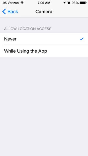 iPhone5カメラがあなたの場所を使用しないようにする方法の詳細について