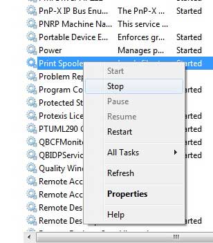 プリントキューに貼り付けられ、印刷を妨げているドキュメントがある場合、たとえば、Windows 7の印刷スプーラーを停止して再起動すると、問題が解決する可能性があります。
