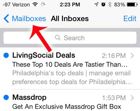 ステップ2:タッチしますメールボックス画面の上部のボタン(そこにある場合)。