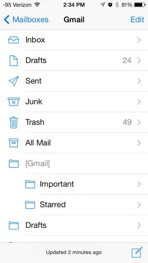 iPhoneのメールアプリには、複数のフォルダーと電子メールアカウントをナビゲートできるようにするフォルダー形式があります。