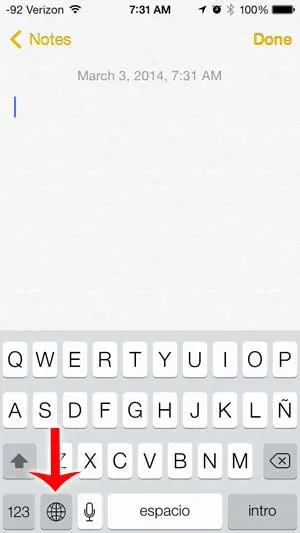ステップ3:スペースバーの左側にあるグローブアイコンをタッチして、他のキーボードに切り替えます。