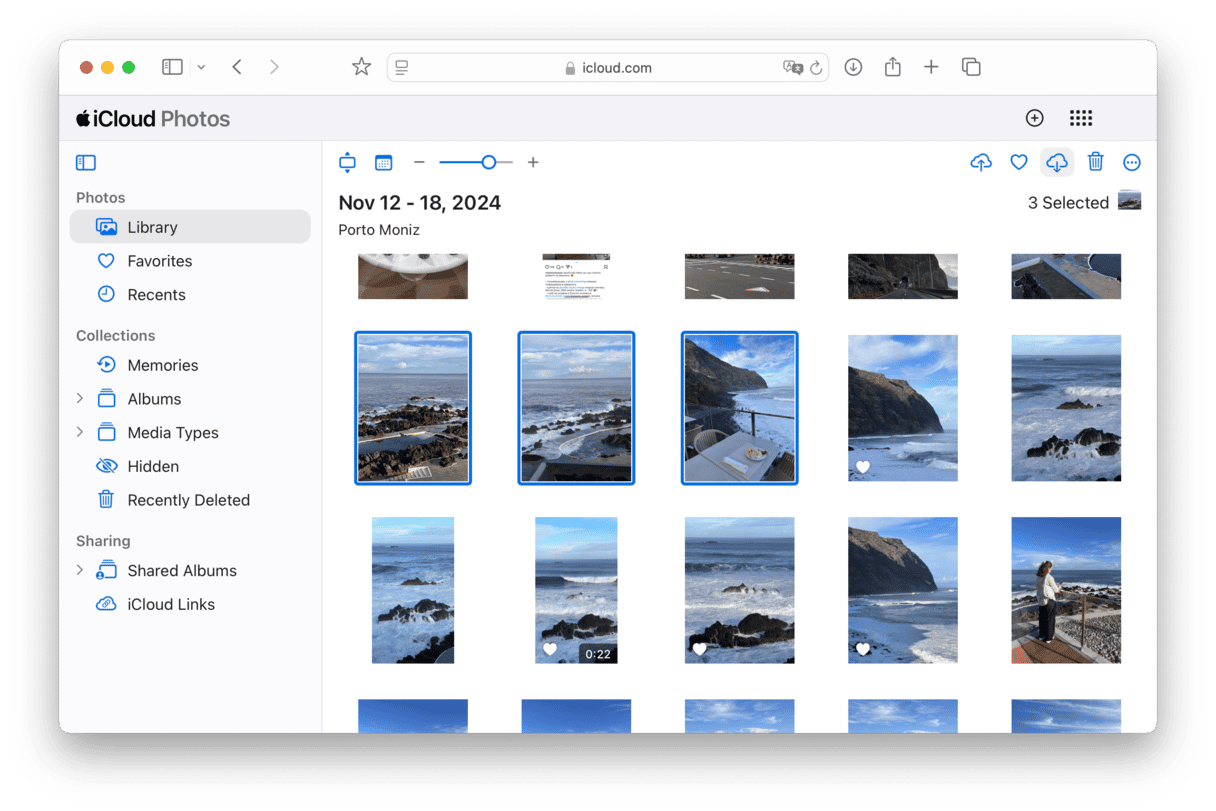 - iCloudドライブに移動し、Macに持ちたいファイルを選択します。 [ダウンロード]ボタンをクリックして、ファイルのコピーをローカルに保存します。