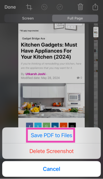長いスクリーンショットはPDFとして保存されます。これが、iPhoneの写真アプリに保存されない理由です。通常のスクリーンショットもファイルアプリに保存できます。保存すると、ポップアップメニューを介してPDFSに変換できます。写真アプリにスクリーンショットを表示したい場合は、画像として保存してください。