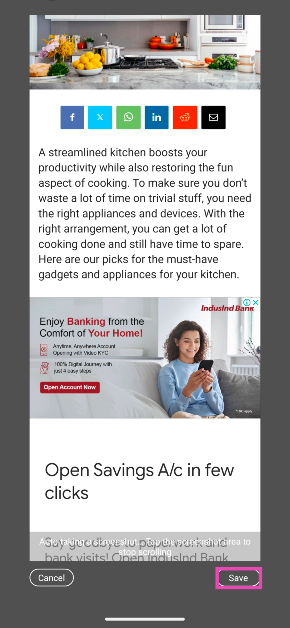 ステップ3:携帯電話は、Webページのスクロールを自動的に開始して、スクリーンショットを撮影します。打つ保存 スクリーンショットを終了したいときはいつでも。