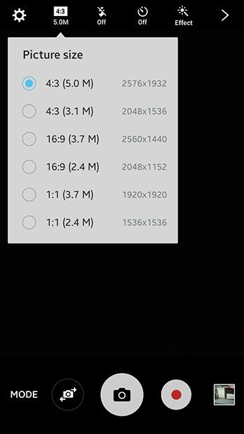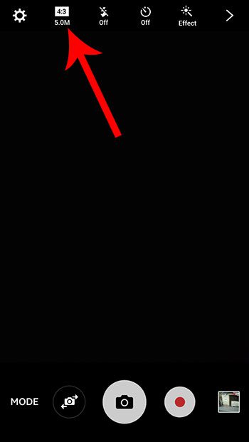 ステップ2:画面の上部にある解像度ボタンをタッチします。下の写真には書かれています4:3 5.0m、しかし、現在の解像度の設定が異なる場合、携帯電話で何か違うことを言うかもしれません。