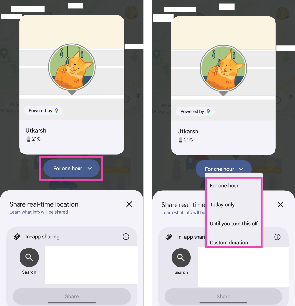 ステップ4:タップします1時間位置共有期間を設定します。