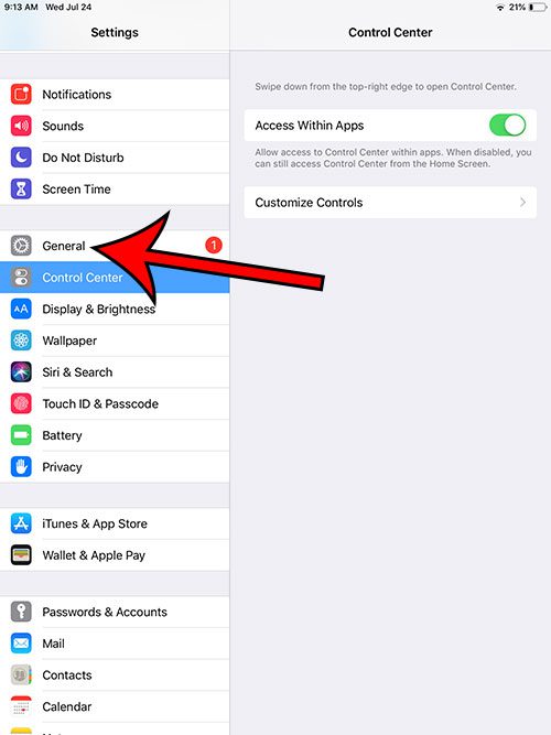 ステップ2:を選択します一般的な画面の左側にあるオプション。