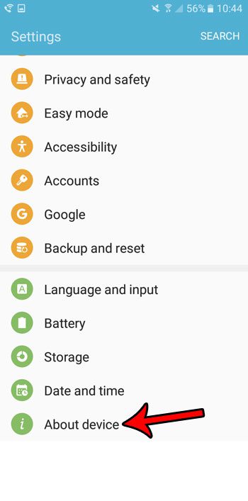 ステップ3:画面の下部までスクロールして選択しますデバイスについて。