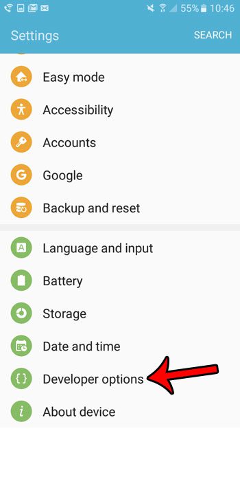 ステップ6:選択します開発者オプションアイテム。上にありますデバイスについて。