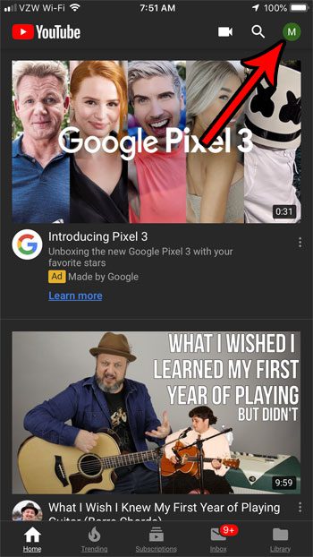 ステップ1:開きますYouTubeアプリ。