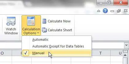 幸いなことに、セルに変更を加え、代わりにすべてのフォーミュラ計算を手動で実行するたびに、Excel 2010を式の合計の更新を停止することができます。