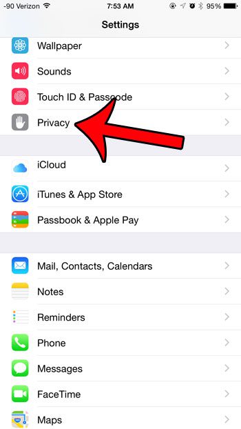ステップ2:下にスクロールして選択しますプライバシーオプション。
