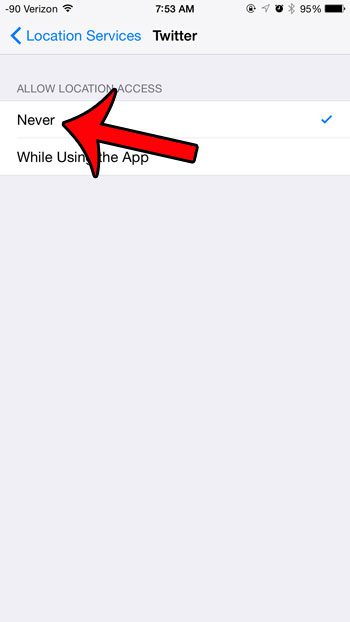 幸いなことに、iPhoneの特定のアプリのロケーションサービスを選択的に無効にすることができ、Twitterアプリはこの機能をオフにできるアプリに含まれています。