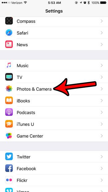 ステップ2:下にスクロールして選択します写真とカメラオプション。