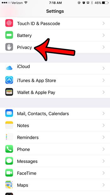 ステップ2:下にスクロールして選択しますプライバシーオプション。