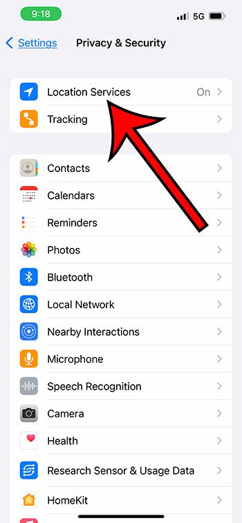 ステップ3:タッチしますロケーションサービス画面の上部にあるメニュー項目。