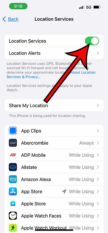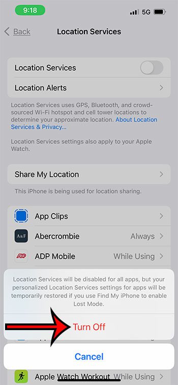 あなたは行くことによってiPhoneの場所をオフにすることができます設定>プライバシーとセキュリティ>ロケーションサービス>その後、オフになりますロケーションサービスオプション。