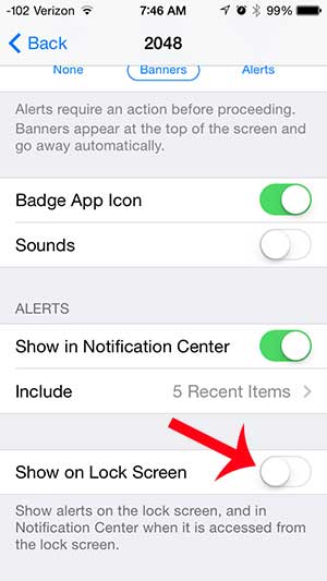 2048ゲームのアラートを構成するための多くのオプションがあり、以下の手順に従うと、すべてのゲームにアクセスできます。したがって、このチュートリアルでは、ロックスクリーに表示されるアラートの電源を切ることに焦点を当てますが、他のアラート設定も変更することもできます。