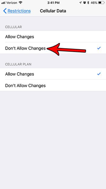 Netflixのセルラーデータの使用をオフにするために上記の手順を完了した後、iPhoneのセルラーデータの使用制限を設定することができます。設定>一般>制限>制限を有効にします。その後、制限パスコードを作成します。これは、ロックを解除するために使用する通常のデバイスパスコードとは異なるはずです。次に、下にスクロールして選択しますセルラーデータのオプション変更を許可しますセクション、次に選択します変更を許可しないでください下のオプション携帯電話。
