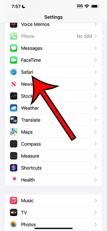 ステップ2:下にスクロールして選択しますサファリオプション。