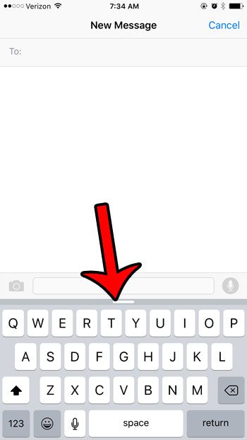 テキストメッセージのメッセージフィールドの内側をタップして、灰色の単語提案バーが表示されるようにし、バーの内側をタップし、そこに指を押し続けてからスワイプします。少し注意が必要ですが、予測テキストが最小化されると、以下の画像のように見えます。