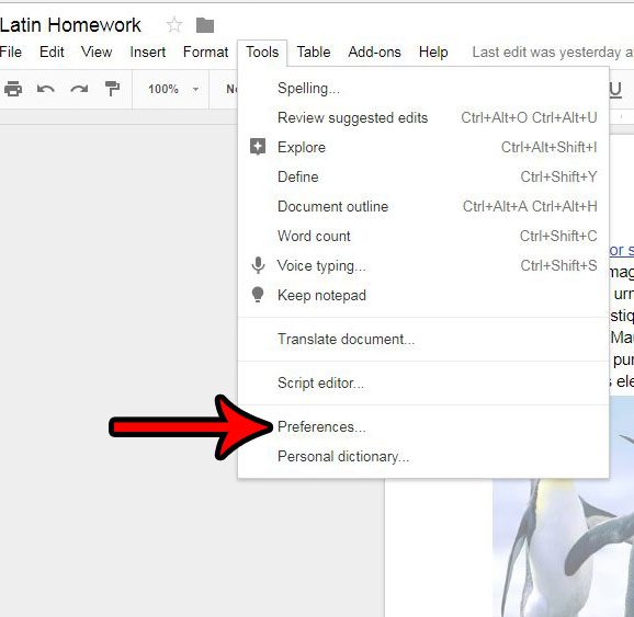 ステップ3:選択します好みこのメニューの下部近くのオプション。