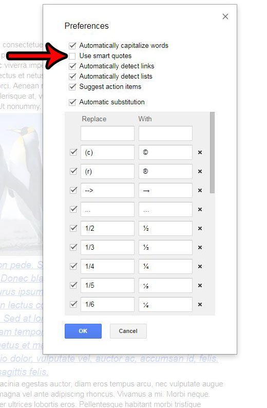 Googleドキュメントのドキュメントに引用符を追加しようとしていますが、近くのテキストの方向に「カール」を続けていますか?これは、「Smart Quotes」と呼ばれるものが現在有効になっているために発生しています。