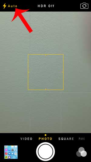 ただし、これは手動で調整できるものです。 iOS 7のiPhoneカメラには、フラッシュ用の3つの異なるオプションがあり、「自動」、「オン」、「オフ」です。